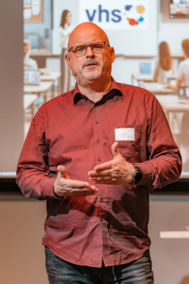 Webvideo, Künstliche Intelligenz, Games, Augmented Reality, Podcasts, Making. Der Impulstag brachte Mitarbeitende und Kursleitende der Berliner Volkshochschulen zusammen, um neue Ansätze des lebenslangen Lernens unter den Bedingungen der digitalen und sozial-ökologischen Wende zu erkunden, neuen Ideen und Konzepten Raum zu geben, Barrieren abzubauen und neue Zielgruppen zu erreichen.